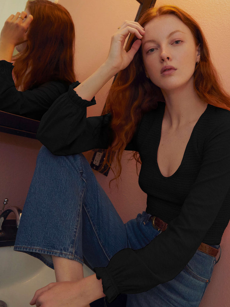 Bunny Smocked Tee in Jet Black